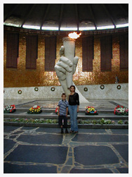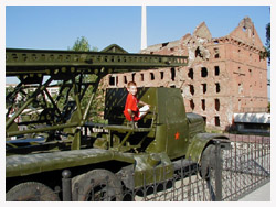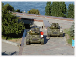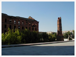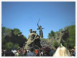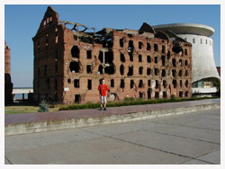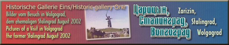 Ein Besuch in Wolgograd / A visit to Volgograd Hier findet ihr einige Bilder und Informationen zu Wolgograd, dem ehemaligen Stalingrad dem Ort der blutigsten und verlustreichsten Schlacht des zweiten Weltkrieges und den heutigen Gedenkstätten. In this gallery you'll find some pictures and short desciptions of Volgograd, the former Stalingrad an place of the bloodiest battle in World War II and the memorials around the city today. Here is a link to a good russian webpage that give a good orientation and description of the Mamavey Kurgan: The Mamayev Kurgan Für deutschsprachige Besucher/for germanspeaking guest: Kurz und schmerzlos zur Stadt: Die Stadt Wolgograd, deren Lage eher eine Erinnerung auslöst, wenn ihr alter Name Stalingrad fällt, liegt in der Steppe Südrußlands am Ufer des guten alten, russischen Mütterchen Wolgas. Damit sei schon das Wesentliche an ihr bemerkt. Es heißt, die Stadt sei 90 Kilometer lang. Ob diese Zahl ganz der Wirklichkeit entspricht, sei dahin gestellt. Fakt jedoch ist, dass sich der Mensch in dieser Stadt schier ausschließlich in einem schmalen Streifen von sechs Kilometer Tiefe von Nord nach Süd und umgekehrt bewegt, immer parallel zum Wolgaufer. Das andere Hauptmerkmal lässt sich deutlich mit dem Hinweis auf den Beinamen "Stadt der Helden" benennen. Von der kollektiven Erinnerung bis in die Architektur ist die Stadt und mit ihr ihre Bewohner aufs Engste mit der Schlacht um Stalingrad verbunden. Allgegenwärtige Denkmale, Stadtbezirks- und Straßenbezeichnungen sind einige der vielen signifikanten Zeichen des großen vaterländischen Krieges. In diesem Zusammenhang sei auf das in Ausmaß und Siegessymbolik gigantische Standbild der Mutter Heimat hingewiesen, die sich mit energischem Gesicht und drohendem Schwert über die Stadt und sein flaches Umland erhebt. Dieses gewaltige Denkmal, genannt "Mamayev Kurgan" ist am 15. Oktober 1967 feierlich eröffnet worden und bildet jedes Jahr eine eindrucksvolle Kulisse für das Veteranentreffen und zum Tage der Armee auch im heutigen Russland. Bereits ein Jahr nach Lenins Tod, also 1925 wurde Zarizin in Stalingrad umbenannt. Dies blieb so bis 1961, als die Stadt den Namen Wolgograd erhielt. Der Zusatz Gorod geroj (Stadt der Helden) ist eines der vielen signifikanten Zeichen des Großen Vaterländischen Krieges, der Schlacht um Stalingrad. Das brachliegende Steppenland um Rassoschki, wo sich heute ein russischer und deutscher Soldatenfriedhof gegenüberliegen, ist versetzt von Menschenknochen. Der Ausspruch eines sowjetischen Generals, der Krieg sei erst dann vorbei, wenn der letzte Soldat aus der Erde geborgen sei findet heute wieder Bedeutung, da Jugendorganisationen freiwillig Ende der neunziger Jahre wieder damit begonnen haben, die Gebeine gefallener Soldaten beider Seiten zu sammeln und auf Ehrenfriedhöfen beizusetzen. Leider nimmt der "Souvenierhandel" mit den verrosteten Waffen, Gebeinen und anderen Kriegsüberbleibseln immer weiter zu, hier bleibt die Hoffnung das dieses im Laufe der Zeit auch von den russischen Behördern schärfer geahndet wird. Sorry, a soon as I can I will translate the above text to english :) Eine schöne bebilderte Zusammenfassung zu Wolgograd gibt die Seite Zarizin, Stalingrad, Volgograd es sind jedoch Russisch Kenntnisse erforderlich! A good overview to Volgograd is available under Caricin, Stalingrad, Volgograd. But you need some knowlegde of russian for this site. Hier unsere Bilder / Here our pictures |