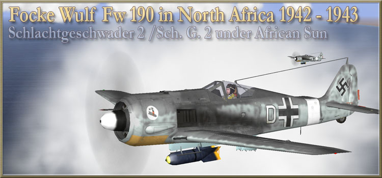 Persönliche Anmerkung/Private Remark: Please refer to the given Sources and Literature advises which I used in order to complete these paint schemes on the actually main or my Literature pages. Let me thank all members of different communities around the World Wide Web that shares necessary information's and historical relations to get these paint schemes so accurate as possible! *** "Luftwaffe - Focke Wulf Fw 190 in North Africa" II. Gruppe Schlachtgeschwader 2 (II./Sch. G. 2) Historische Bemalung (Skins) und Informationen zu den Focke Wulf Fw-190 Flugzeugen der II. Gruppe des Schlachtgeschwader 2 der Luftwaffe in North Afrika, fotografiert und gefunden auf Flugfelder und Schrottplätzen von Anfang 1943 bis zum 8.Mai 1943. Historical paintwork and information regarding the Focke Wulf Fw-190 airplanes of the II. group of the Schlachtgschwader - Assault Fighter Wing of the Luftwaffe in North Africa photographed and found on airfields and gathered on scrap yards from beginning 1943 till the 8th May 1943.