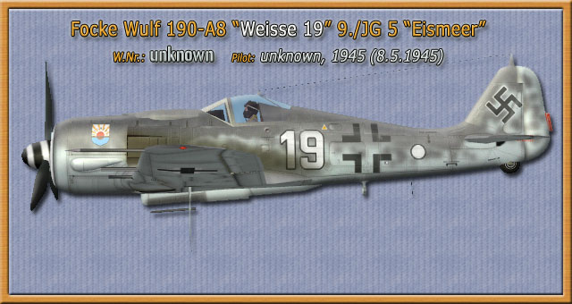 Focke Wulf 190 A8 "Weisse 19" (Update 25.03.2004) Eine weitere Fw 190 A8 der 9. Staffel stationiert in Herdla 1945. Another Fw 190 A8 of the 9. Echelon of JG 5 based at Herdla 1945. Bemalung mit Markierungen / Paintworks for FB with Markings Bemalung ohne Markierungen / Paintworks without Markings (blank)