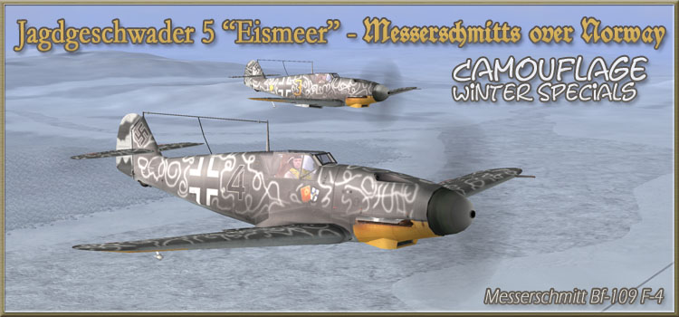 *** "Messerschmitts over Norway" Bf-109 F-4 Camouflage Winter Specials Historische Bemalung (Skins) und Informationen zu Flugzeugen vom Typ Messerschmitt Bf-109F-4 des Jagdgeschwaders 5 "Eismeer" während der Wintermonate bis Anfang Frühling 1943. Historical paintwork and information's regarding the Messerschmitt Bf-109F-4 Fighter planes of Jagdgeschwader 5 "Eismeer" during the winter months till Spring of 1943.