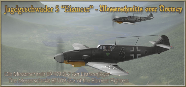 "Messerschmitts over Norway" Bf-109 G-2 of Jagdgeschwader 5 "Eismeer" Historische Bemalung (Skins) und Informationen zu Flugzeugen vom Typ Messerschmitt Bf-109 G-2 des Jagdgeschwaders 5 "Eismeer" bis Anfang 1944. Historical paintwork and information's regarding the Messerschmitt Bf-109 G-2 Fighter planes of Jagdgeschwader 5 "Eismeer" of the Luftwaffe till beginning of 1944.