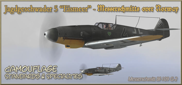 *** "Messerschmitts over Norway" Bf-109 G-2 with Camouflage Standard & Specials Historische Bemalung (Skins) und Informationen zu Flugzeugen vom Typ Messerschmitt Bf-109 G-2 des Jagdgeschwaders 5 "Eismeer" und deren Eigenheiten bis bis Anfang 1944. Historical paintwork and information's regarding the Messerschmitt Bf-109 G-2 Fighter planes of Jagdgeschwader 5 "Eismeer" and some of their specialties till beginning of 1944.