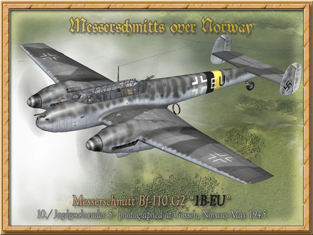 *** "Messerschmitts over Norway" Bf-110G Heavy Fighter and Destroyers of Eismeer Fighters Historische Bemalung (Skins) und Informationen zu Flugzeugen vom Typ Messerschmitt Bf-110G der Zerstörergruppen im Norwegen Einsatz bis Mai 1945. Historical paintwork and information's regarding the Messerschmitt Bf-110G Destroyer Planes during their Combat Missions in Norway till May 1945.