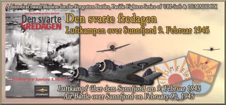 "A historical based Mission for the Forgotten Battles, Pacific Fighters Series of UBI-Soft & 1C:MADDOX" Den svarte fredagen - Luftkampen over Sunnfjord 9. februar 1945 Luftkampf über dem Sunnfjord am 9. Februar 1945, eine Mission für die Flugsimulation Forgotten Battles-Pacific Fighters Serie von UBI-Soft und 1C:MADDOX. Air Battle over Sunnfjord on February 9th, 1945, A historical based Mission for the Forgotten Battles, Pacific Fighters Series of UBI-Soft & 1C:MADDOX