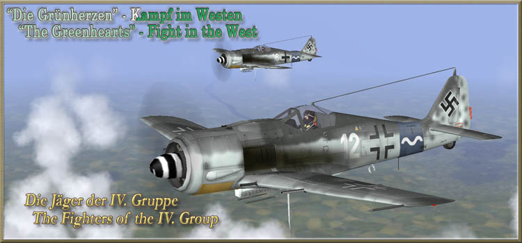 "Greenhearts - Butcherbirds in the West" Focke Wulf Anton der IV. Gruppe Jagdgeschwader 54 "Grünherz" Historische Bemalung (Skins) und Informationen zu den Focke Wulf Flugzeugen der IV. Gruppe des Jagdgeschwaders 54 der deutschen Luftwaffe stationiert an der Westfront bis zum Kriegsende 1945. Historical paintwork and information regarding the Focke Wulf airplanes of the IVth group of "Jagdgeschwader" 54 of the Luftwaffe based at West Front till the end of the war 1945.