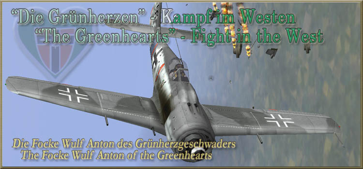 Auf dieser und später folgenden Seiten präsentiere ich meine Interpretation von historischen Bemalungen die für die "Anton" Serie der Focke Wulf Flugzeuge beim Jagdgeschwader 54 Verwendung fanden. Das Jagdgeschwader verdankt seinen berühmt, berüchtigten Namen "Grünherz" dem als Symbol eingeführten Geschwaderwappen eines grünen, weis umrandeten Herzen. Hauptsächliches Einsatzgebiet war zwar die Ostfront, ist aber nach der Invasion teilweise in die Reichsverteidigung integriert worden und kämpfte ab Mitte 1944 von verschiedenen Standorten mit großem Erfolg gegen die alliierten Luftstreitkräfte. Unter der Führung von Hauptmann Robert Weiss war die III. Gruppe des JG 54 mit 100 bestätigten Abschüssen (der 100. Abschuss erzielte Feldwebel Wilhelm Müller vom Stab der III./JG 54 am 15. August 1944) bei 50 eigenen Verlusten die erfolgreichste Einheit der Luftwaffe an der Invasionsfront. Auch Teile der IV./JG 54 flogen ab Herbst verstärkt Einsätze an der Westfront bis hin zu dem letzten Aufbäumen der Luftwaffe am 1. Januar 1945 während der Operation Bodenplatte.