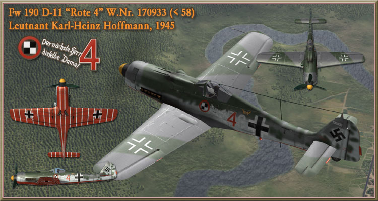 Hier nun die für Forgotten Battles von mir gemalten Tarnanstriche zu den vier berühmten buntbemalten Flugzeugen der Schutzstaffel des Jagdverband 44. Ihr findet unter den Vorschaugrafiken zu den Bemalung den Link zum Download des Farbschema, sowie einen Link zurück zu der Jagdverband 44 Seite mit historischen Information zu den Piloten und Bildern der einzelnen Flugzeuge, sowie des Flughafens Ainring in Bayern 1945.