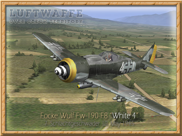 Focke Wulf 190-F8 der/of 7./SG 10 "Weisse/White 4" JaPo - "Luftwaffe over Czech Territory 1945" Hier ist auch der Tarnanstrich durch eine neue Schicht RLM 71 oder 83 nachgebessert worden. Die Maschine bekam dadurch diesen "Fleckenlook" der das SG 10 berühmt machte (Fw 190 F8/R1)! Diese Maschine flog bei der 7. Gruppe des SG 10 und fand sich 1945 auf dem Flugfeld bei České Budějovice (deutsch Böhmisch Budweis oder Budweis).