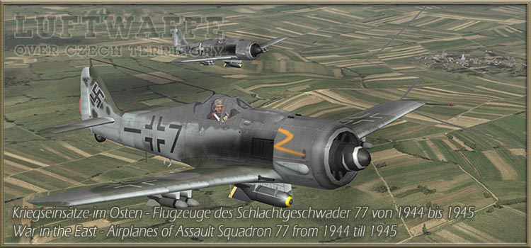 "Luftwaffe over Czech Territory 1945" Historische Bemalung (Skins) und Informationen zu Flugzeugen des Schlachtgeschwaders 77 der deutschen Luftwaffe stationiert in Russland und Böhmen und Mähren (heutiges Tschechien) bis zum Kriegsende 1945. Historical paintwork and information regarding the Forces of "Schlachtgeschwader" 77 of the Luftwaffe over Russia and the Czech Territory till the end of the war 1945.