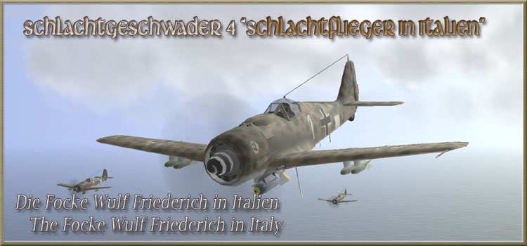 Da die Maschinen des Schlachtgeschwader 4 speziell die Nationalkennungen aus Tarngründen übermalten stelle ich hier nur eine spezielle Version ohne Markierungen zum Download zur Verfügung. Der Download Link folgt direkt unter dem Text, danke :) Because of the specialty in over painting of the national markings, I've prepared a general blank skin of the Fw 190 F8 of Schlachtgeschwader 4 in Italy. Please download the "Blank version" below, thx :)