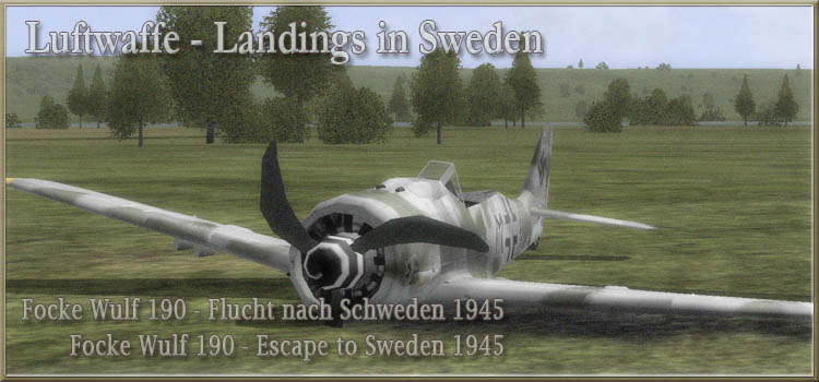 Persönliche Anmerkung/Private Remark: Please refer to the given Sources and Literature advises which I used in order to complete these paint schemes on the actually main or my Literature pages. Let me thank all members of different communities around the World Wide Web that shares necessary information's and historical relations to get these paint schemes so accurate as possible! *** "Luftwaffe - Landings in Sweden" Focke Wulf 190 - Flucht nach Schweden Historische Bemalung (Skins) und Informationen zu den Focke Wulf Flugzeugen von Luftwaffeneinheiten, die aus der Kurland Tasche während 1945 nach Schweden flohen. Historical paintwork and information regarding the Focke Wulf airplanes of different Luftwaffe Fighter Wings that escaped from the Kurland Pocket to Sweden during 1945.