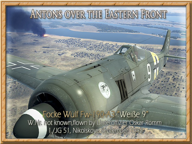 Focke Wulf 190-A3 1./JG 51 "Weiße 9" Flown by Unteroffizier Oskar Romm with 1./JG 51 in September 1942 Bildquelle/Picture Source: http://luftwaffeinprofile.se/Romm.html
