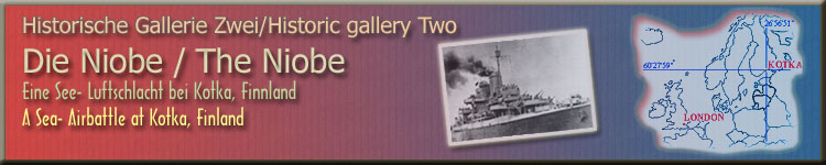 The dramatic seabattle at Kotka, July 16th 1944 A summary based on information of AntEater, Red Star, Kossu and JAS Gripen from the IL-2 Sturmovik Board of SimHQ 1. The Story The Flakschiff Niobe (a refitted Dutch Gelderland-class coastal defence ship originally launched 1898) was sunk by the soviets near the port of Kotka, Finland, on 16 July 1944. During that time the Finnish Airforce had moved all air units away from Kymi to repell soviet's massive attack at the Karelian Isthmus. The Germans knowing that their ships based at Kotka were totally without fighter cover moved the Niobe near Kotka harbor. The soviet Baltic Fleet HQ mistakenly thought this ship to be the Finnish Navy pocket battleship "Vainamoinen" and knowing that Kotka was not protected by fighters sent an air armada of 131 planes to attack the ship. The battle between the Finnish and German AA-gunners and Russian planes took 11 minutes and resulted in the sinking of the Niobe and destruction of 9 attacking aircraft. So, not an airbattle at all, just another soviet bombing raid, this time against a military target. (Text by Kossu, 9/14/2002) 2. The Ship NIOBE Laid up disarmed until May 1940, when she was captured by the Germans in Den Helder. Converted to floating AA-battery ( a so called "Flakschiff" ) between 1941 and 1944 ( first at C. van der Giessen & Zonen in Krimpen a/d IJssel, later in Elbing ) and renamed Niobe, she was commissioned as such on March 1 1944. She had a very short career, as she was bombed and sunk by Russian aircraft on July 16 1944 in the Finnish Gulf near Kotka. She proved to be a sturdy ship, shooting down nine aircraft and taking nine hits before sinking. Raised by the Finns in 1947, but abandoned by the Dutch government. Broken up locally. (Origin: http://leden.tref.nl/~jviss000/Default3.htm, Info by Kossu 9/14/2002) Here a bit more detailed information regarding the Niobe by AntEater 9/13/2002, SimHQ Niobe was a Kriegsmarine Ship, manned by german sailors. 3. The Planes & Pilots Some more details by JAS Gripen: I knew I had seen it but for the life of me couldn't remember where Participating ac were as follows: 28 Pe-2 from 12 Gv.BAP, Lt.Col. V.I.Rakov (strike commander) 4 A.20C Havoc from 51 MTAP, Lt.Col. I.N.Pomarenko 23 IL-2 from 47 SHAP , Lt.Col. N.G.Stepajan 30 Yak-9 from 21 IAP , Lt.Col. P.I.Pavlov 6 Yak-9 from 15 ORAP 24 LaGG-3 from 9 IAP, 11 IAP 16 La-5 from 1 Gv.IAD. Initial attack was by IL-2s (suppression?)followed by 3 separate Pe-2 diveattack waves, the last of which was a feint to draw attention from the 4 Havocs approaching low. Pe-2s scored two hits and Havocs scored the decisive two 1000kg hits below waterline sinking the ship to the bottom of the harbor. For this attack HSU was awarded to Rakov (his 2nd Gold Star), Ponomarenko, Pavlov and posthumously to Capt.Tikhomirov of the Havocs of which Soviets admitted losing the two ac that had been the last to attack. Source: Red Stars (1995) Information by JAS Gripen, 9/24/2002 Question by me: Lots of fighters joining with the bomber groups! Any information of their tasks? Surpressing the AA in the harbour area, CAP or just available fighterbombers during that time? Answer by JAS Gripen: Unfortunately no, but it is not difficult to make an educated guess based on the fighter types. LaGG-3 was very usual close escort for IL-2s while Yaks were used for topcover but in this instance the Yaks could have been Pe-2 escorts, too, as Pe-2s flew much higher due to the dive requirement (for groundtargets such as airbases the Pe-2s' dive could start from as high as 4km after an approach flight at 6 km). My bet for La-5s is a free ranging escort/sweep. Now we only need some artistic licence in form of Blue planes and an interesting "what if" mission is ready. What if Germans had allocated a staffel to defend this northern cornerstone of their "anti-Soviet navy" barrier? Say, the 12 Bf-109G6/R6 planes from the I/JG302 that had been covering Helsinki for some time before returning to Germany in May 1944? Plus a couple of FAF 109s, of course! Question by me: How many FAF fighters could possibly be there at this time and which fighter group would that have been? Answer by Kossu: Historically there were no FAF or any other fighters based at Kymi field at that time as mentioned before. Every available fighter was moved closer to the front (Karelian Isthmus) to repell the soviet onslaught. The flights that had been stationed at Kymi earlier belonged to the HLeLv